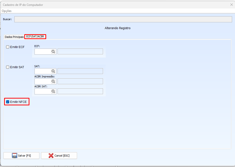 3) Em seguida, marque nos dados da máquina, no computador que irá gerar o NFC-e, para Emitir NFCE.